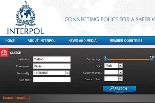 Поиск на сайте Интерпола информацию о Петре Мельнике уже не находит.