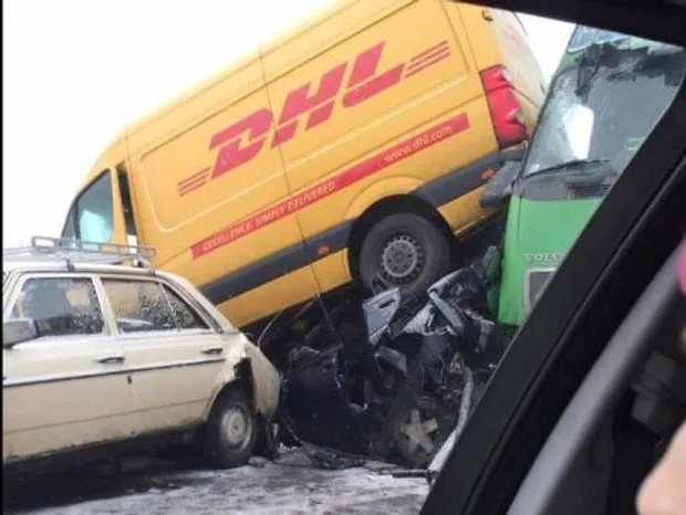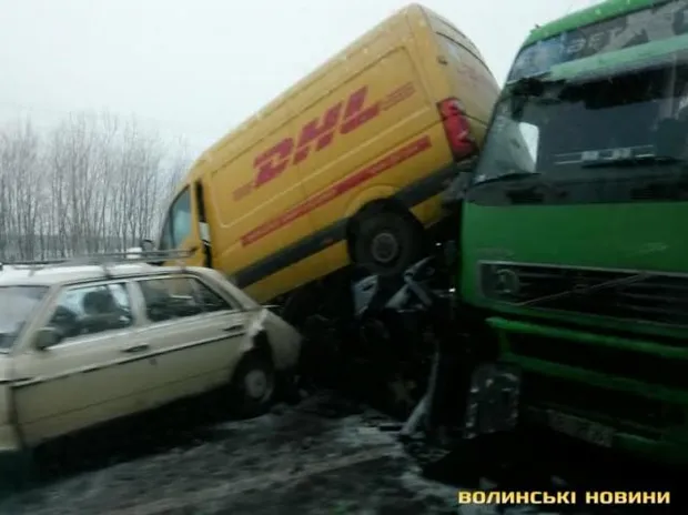 Авария произошла утром на железнодорожном переезде в поселке Голобы Ковельского района. Автомобиль Volvo протаранил последнюю машину в очереди, которая ждала открытия железнодорожного проезда.