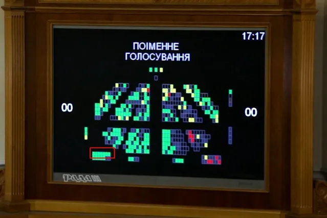 Также на табло поименного голосования системы "Рада" видно, что проголосовало "за" и пустое место слева.