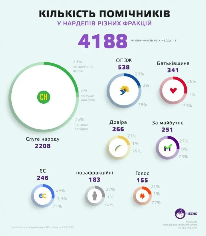 Количество помощников у нардепов по фракциям / инфографика "ЧЕСНО"