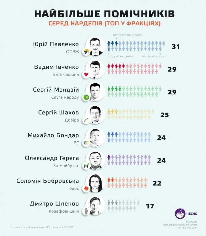 Нардепы, у которых есть больше всего помощников во фракции / инфографика "ЧЕСНО"