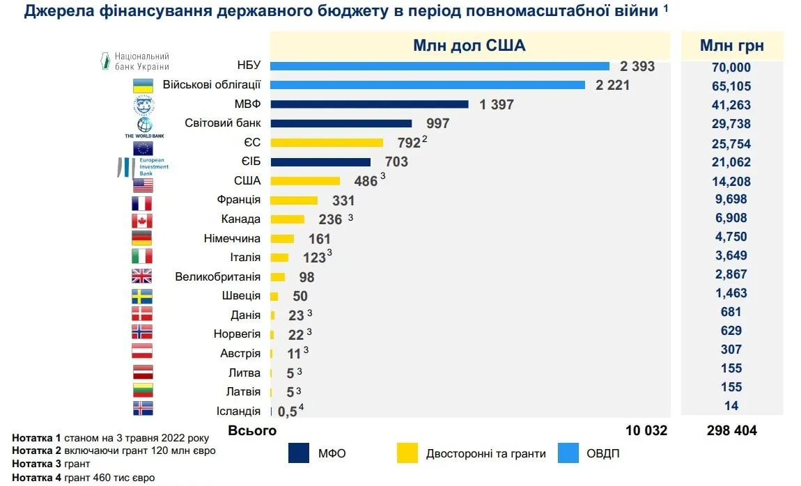 С начала полномасштабного вторжения России Украина получает существенную финансовую помощь от различных стран и мировых организаций.