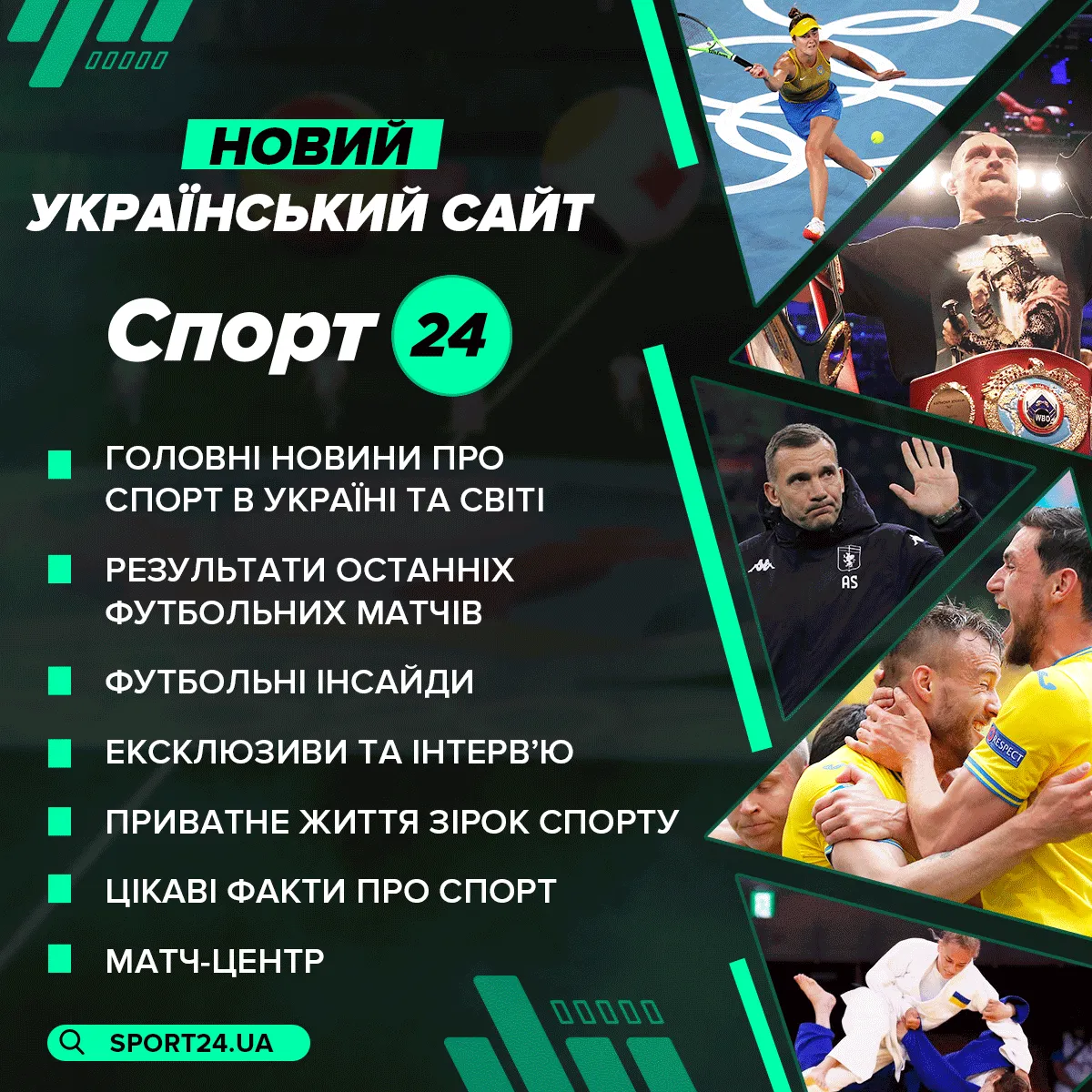 Спорт 24 – это идеальное решение для тех, кто стремится держать руку на пульсе последних спортивных событий и следить за результатами матчей. Кроме того, сайт Спорт 24 предлагает своим читателям собственные футбольные инсайды, эксклюзивы и интервью с известными спортсменами Украины, олимпийскими чемпионами; предоставляет интересные подробности из частной жизни звезд, а также освещает спортивный лайфстайл. Новостной контент сайта поможет оставаться спортивным поклонникам проинформированными, а развлекательные статьи позволят отдохнуть, узнавая интересные факты о спорте.