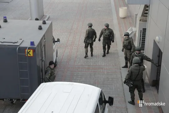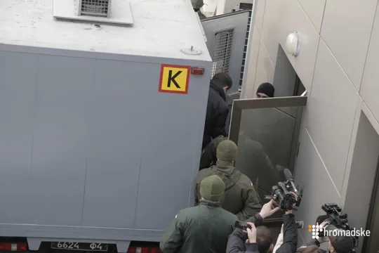 Отмечается, что под судом расположены три автобуса Нацгвардии.