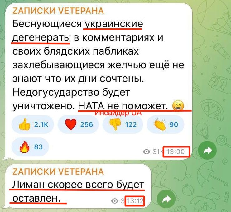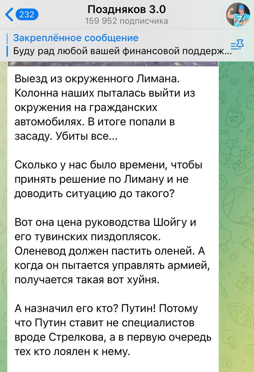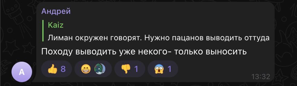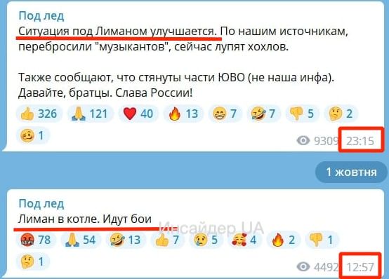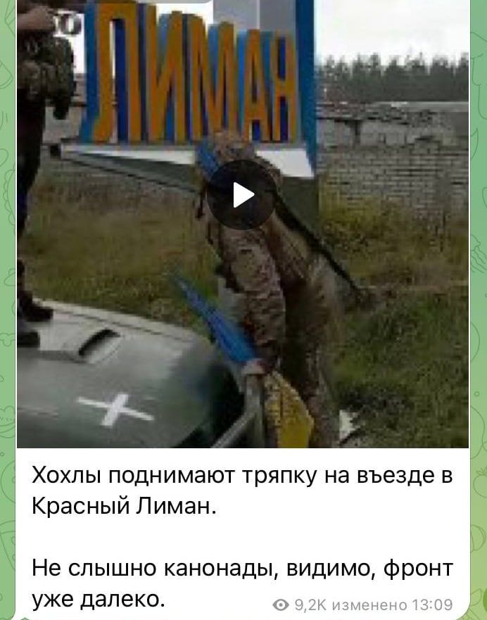 Вечно можно смотреть на 3 вещи: как горит огонь, как течет вода и как российские военкоры после волны сообщений о "подкреплении" в Лимане пишут, что оккупанты в котле. Уверенность россиян резко сменилась в отчаяние.