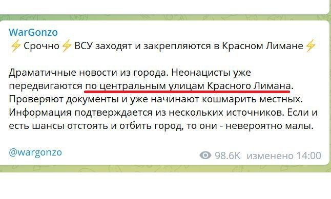 Стоит отметить, что в полночь 1 октября аналитики американского Институт изучения войны в своем отчете предположили, что ВСУ освободят Лиман в течение 72 часов.
