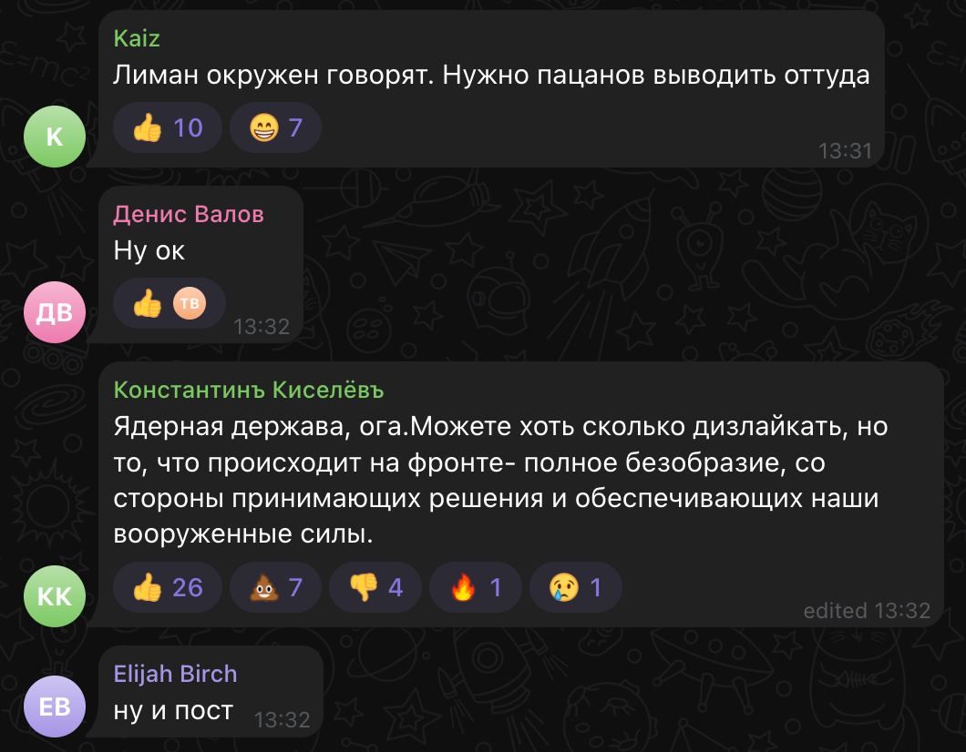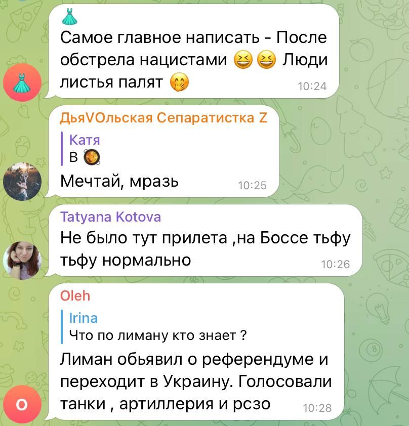 Истерики россиян из-за ситуации в Лимане / Скриншоты