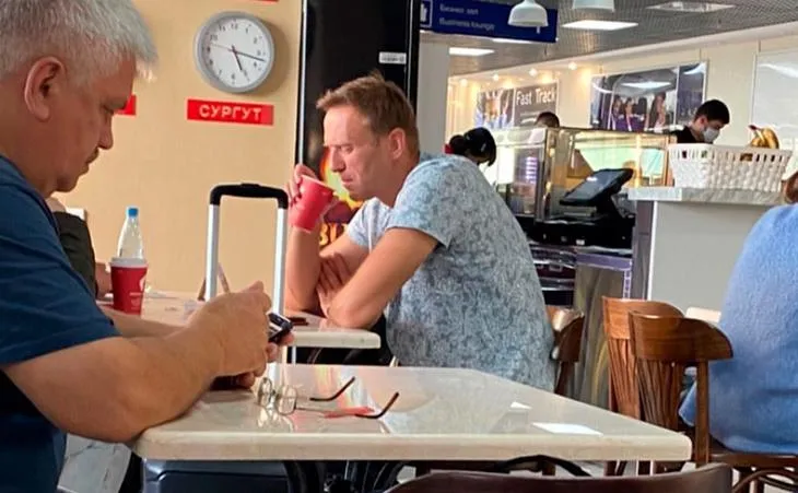 В сети появились фотография, где Навальный перед вылетом пьет чай в кафе в аэропорту Томска. В окружении политика считают, что именно в этот напиток ему добавили яда.