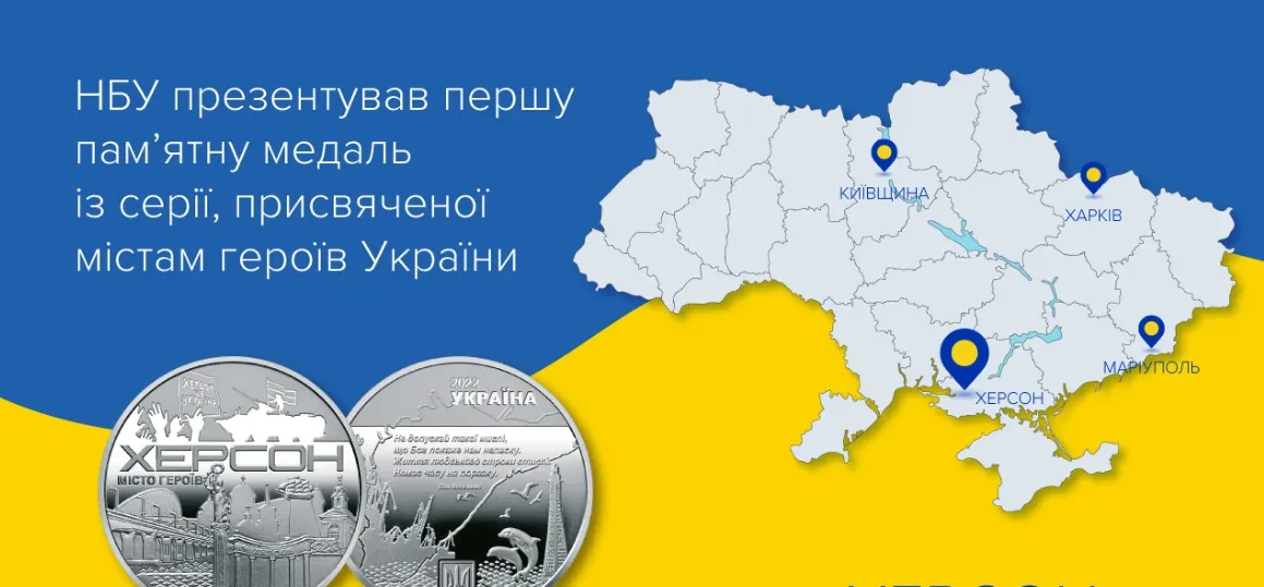 - Нацбанк будет выпускать серию памятных медалей, посвященных городам и их мужественным жителям, которые противодействовали захватчикам.