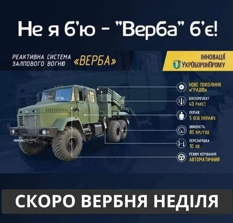 Украинская реактивная система залпового огня калибра "Верба" предназначена для того, чтобы бить врагов, которые пришли на наши земли.