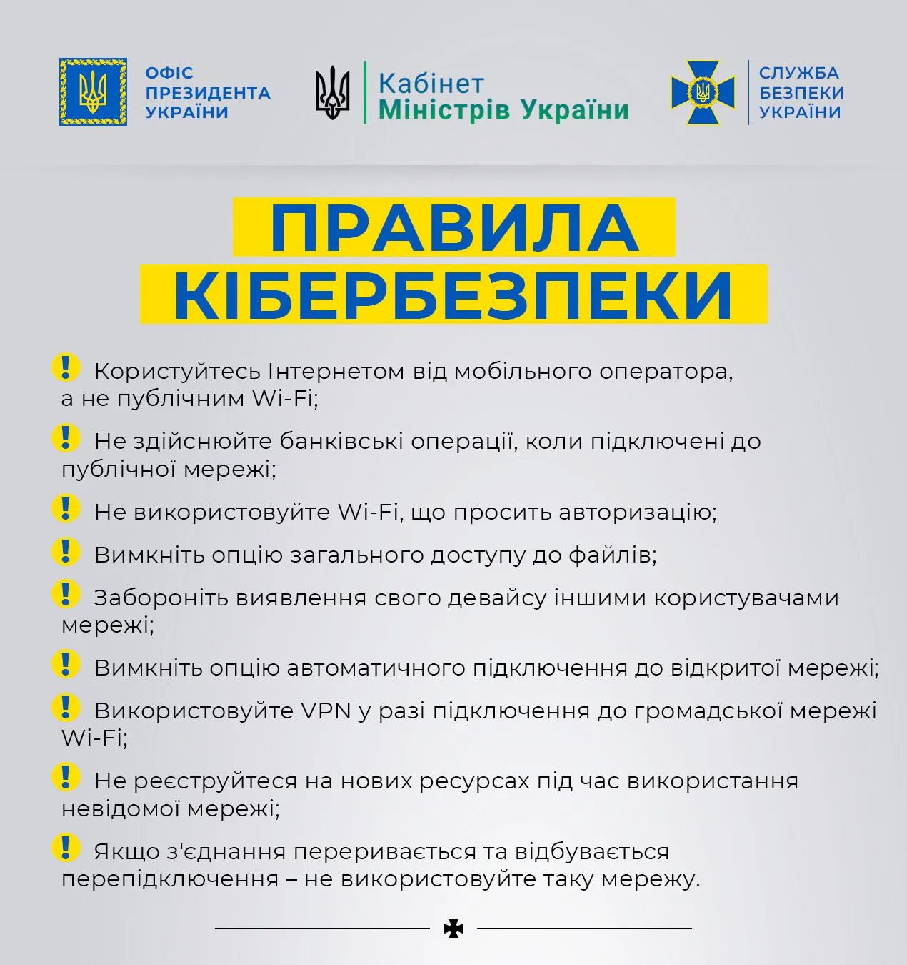 В СБУ призвали, по возможности, не пользоваться публичными Wi-Fi. Тем не менее, если вы все же подключены к публичной сети, нужно четко соблюдать несколько правил.