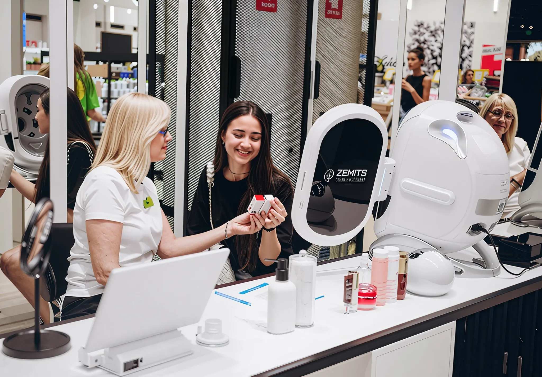 - Сервис и экспертиза на месте. В Beauty Garden можно пройти диагностику кожи лица на аппарате Zemits Skin Analysis System прямо во время шопинга. С помощью искусственного интеллекта, спектральной визуализации и сверхточной камеры он оценивает увлажнение, морщины, поры, пигментацию, чувствительность и даже клеточный метаболизм, на основе чего бьюти-эксперты BROCARD помогают подобрать персональный уход. Похожую экспресс-диагностику здесь предлагают для волос. Технологии и люди работают в синергии – и именно это дает лучший результат.