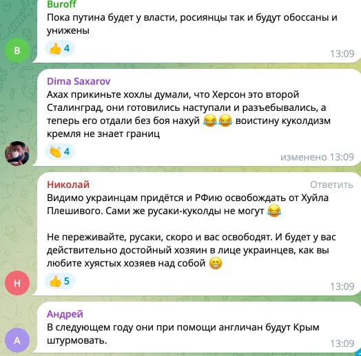 Сами россияне в сети уже начали комментировать последние события в Херсоне. Конечно, хороших сообщений от них ждать не приходится, они "поражены", что "вторая армия мира" сбежала из города.