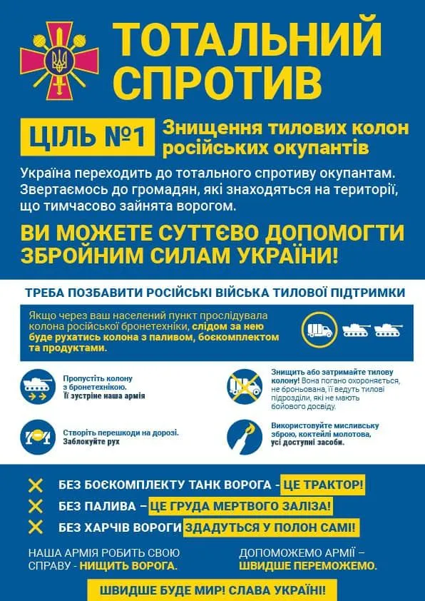 Украинцы, которые находятся на временно захваченных врагом территориях, могут помочь нашим Вооруженным силам. Для этого нужно лишить российские войска тыловой поддержки.