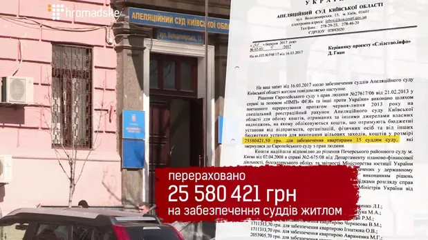 История их борьбы за жилье началась в 2008 году. 18 судей Апелляционного суда Киевской области подали иск против государства. Они требовали, чтобы их, согласно закону, обеспечили жильем в Киеве. Печерский районный суд, который рассматривал иск, постановил взыскать с Государственного казначейства более 30 миллионов гривен на закупку квартир для судей. В 2010 году эти судьи обратились в Европейский суд по правам человека. И уже в 2013 году Европейский суд обязал государство Украина выполнить решение от 2008 года – обеспечить истцов жильем.