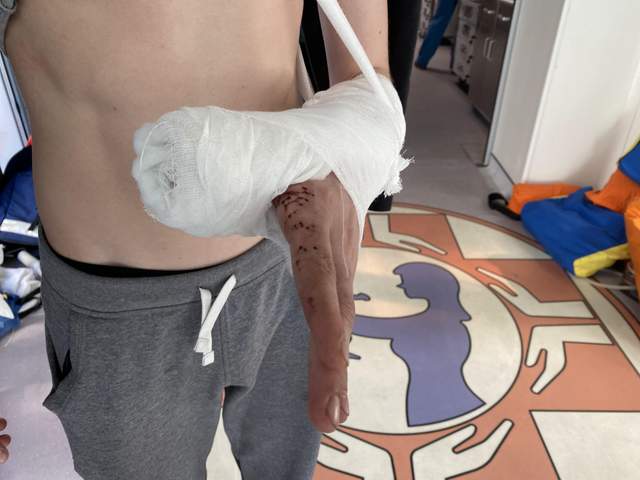 Первый ребенок, который к нам поступил, это было 25 февраля. Меня очень поразила эта история. Это был мальчик, привезенный к нам без родителей, у него была огромная рана на шее, также у него были осколочные и пулевые ранения, в теле было несколько пуль. Он приехал, и мы даже не знали его имени, а записали его как "Неизвестный №1". Его привезла "скорая". Мальчика вытащили из расстрелянной машины, его родителей и сестру расстреляли россияне,