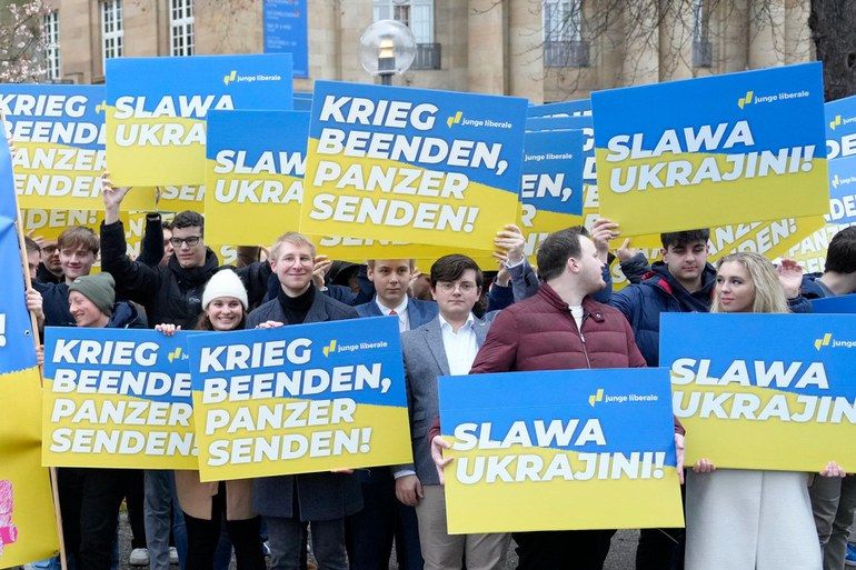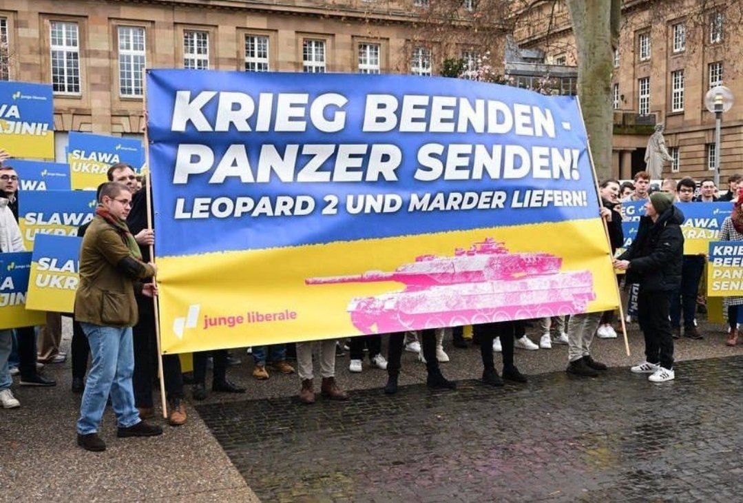 По случаю традиционной встречи Свободных демократов в Штутгартской государственной опере молодые либералы выступили с митингом. Они призвали федеральное правительство и канцлера Шольца продолжить объявленную поставку танков Marder.
