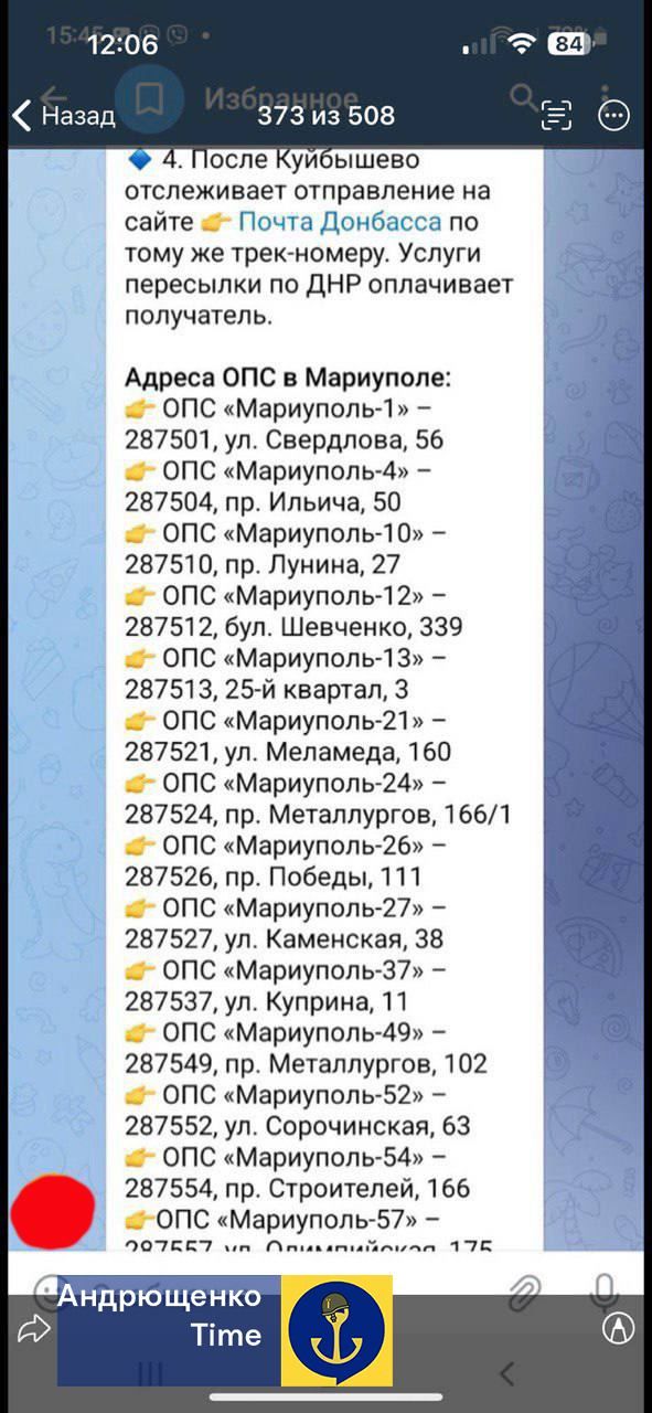 Как утверждает Андрющенко, стоимость доставки в оккупированный Мариуполь достигает около 63 евро. Индекс Мариуполя при доставке остается неизменным, необходимо добавить только цифру 2 спереди. Однако возмущает в этом случае и факт того, что указывать необходимо "Мариуполь, Ростовская область". Более того, надо также добавить, что это квазиреспублика "днр".