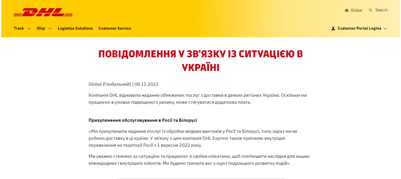 24 Канал связался с компанией DHL В комментарии представители компании подтвердили, что приостановили работу в России и Беларуси, о чем говорится в заявлении на официальном сайте.