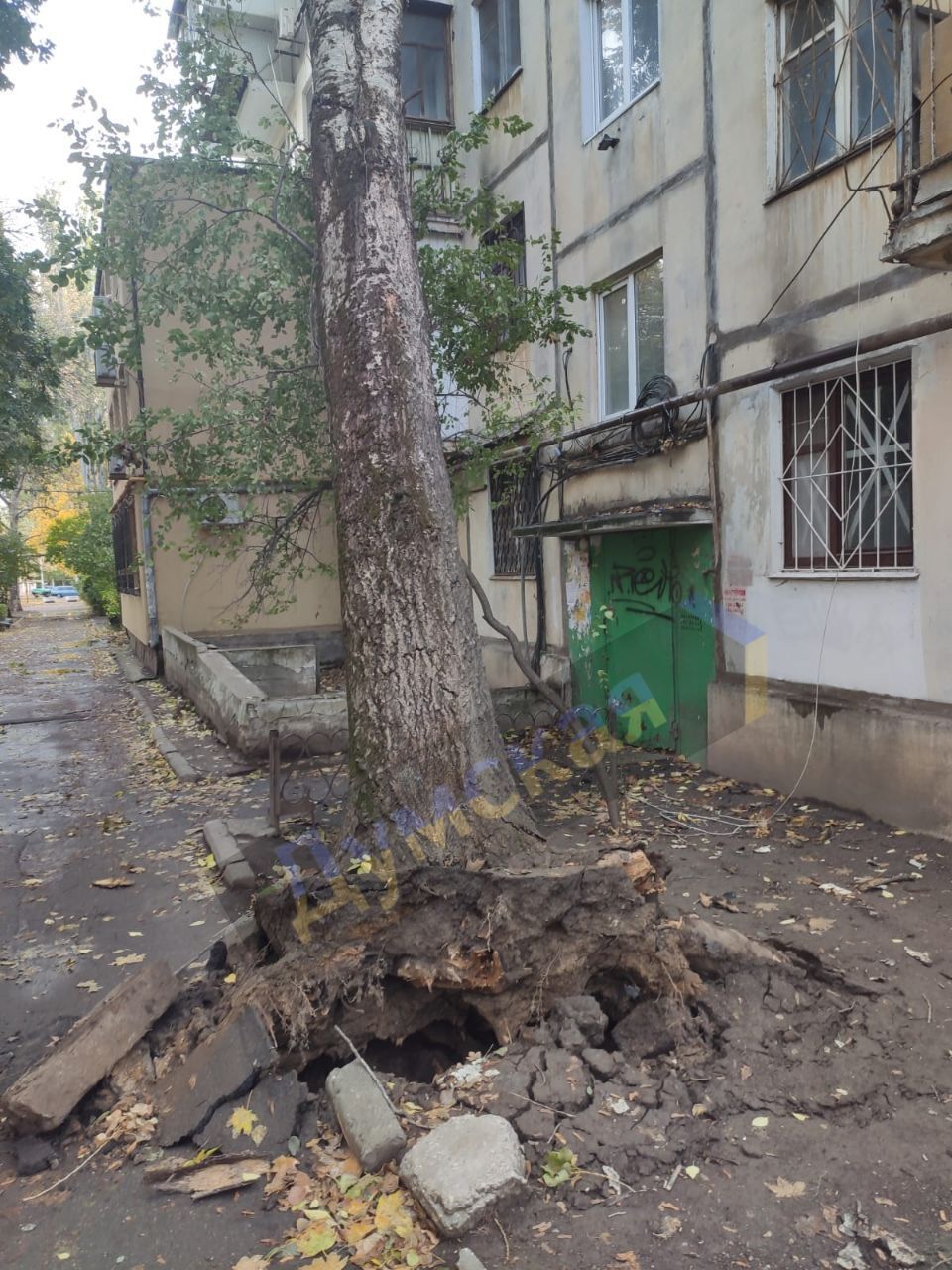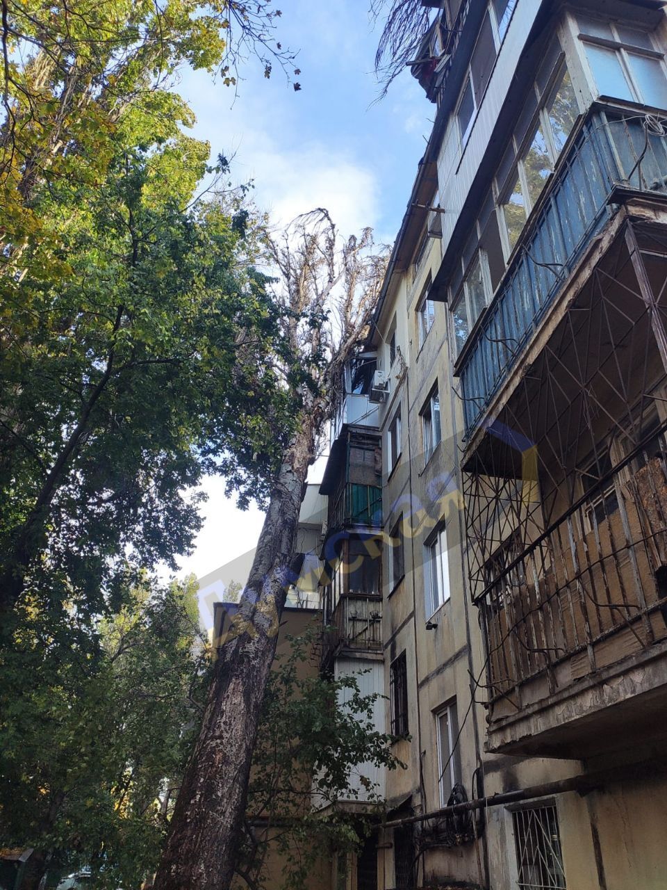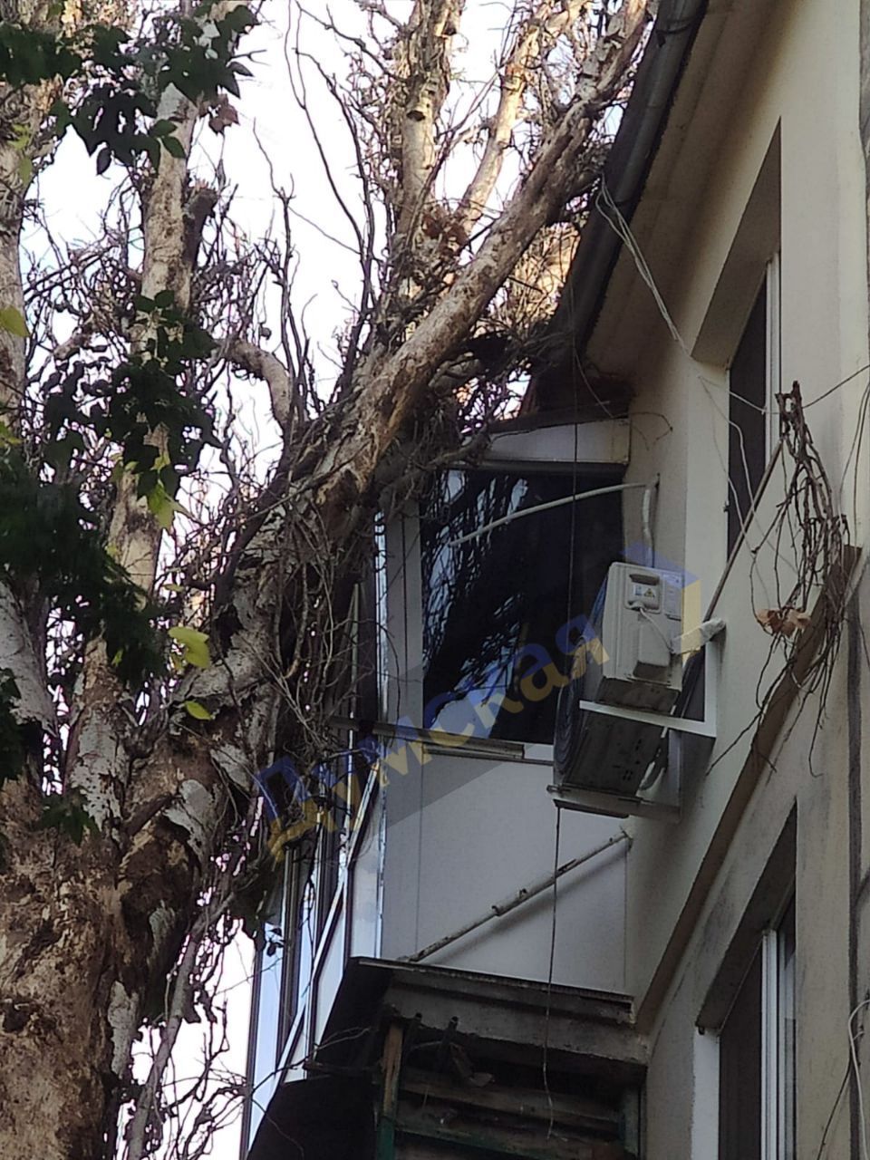 Дерево упало на пятиэтажку в Одессе / Фото из местных телеграм-каналов
