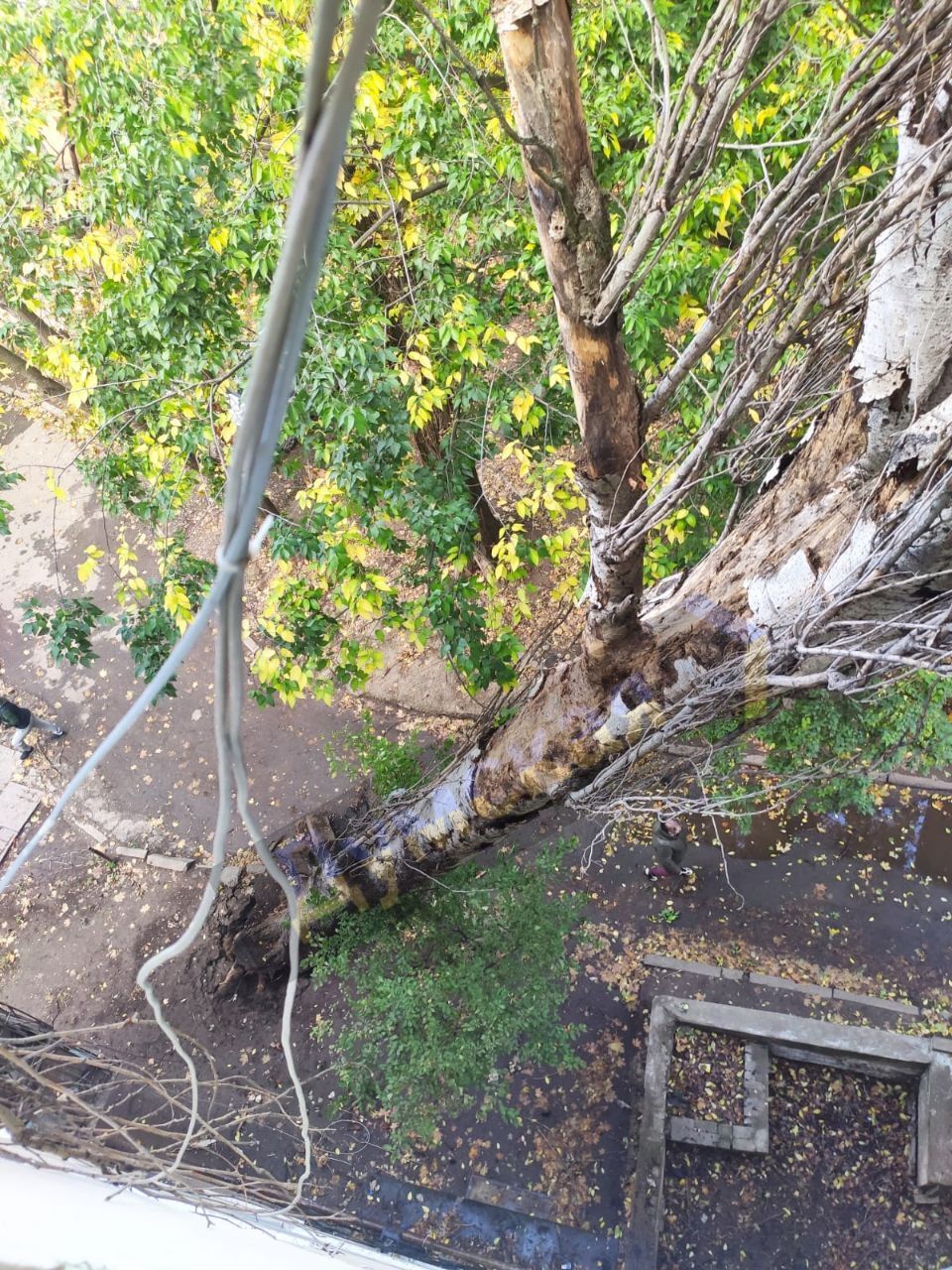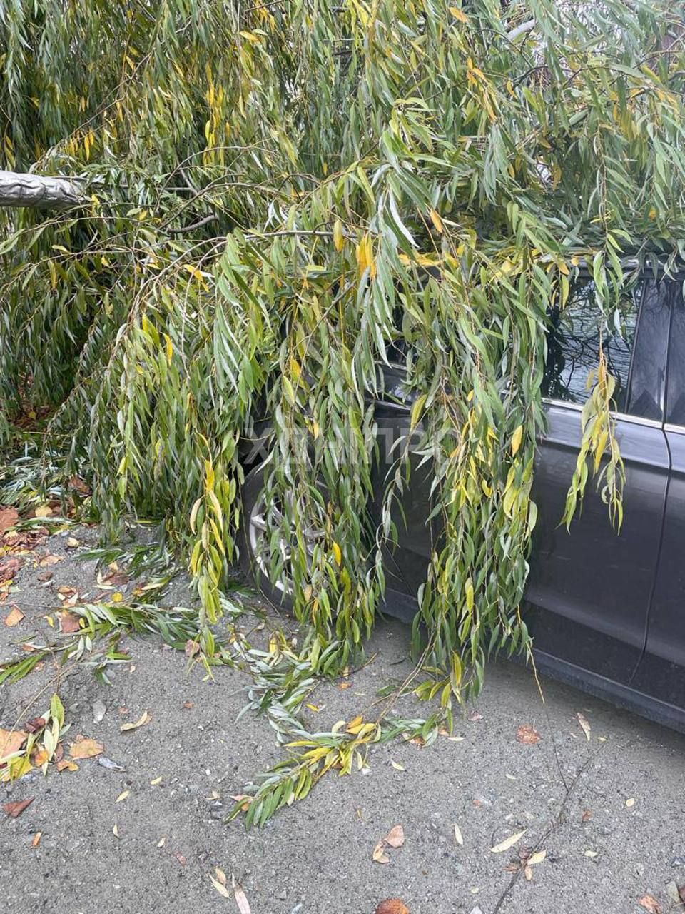 Кроме того, он рассказал, что один из тополей упал на автомобиль. По его словам, чудом из людей никого не травмировало.