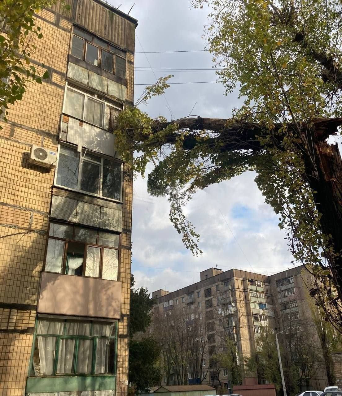 Впоследствии в сети показали, как сухой тополь упал на балкон на улице Героев Крут. В частности, жители пострадавшей квартиры рассказали, что неоднократно просили спилить дерево, но никто не реагировал. В результате инцидента никто не пострадал.