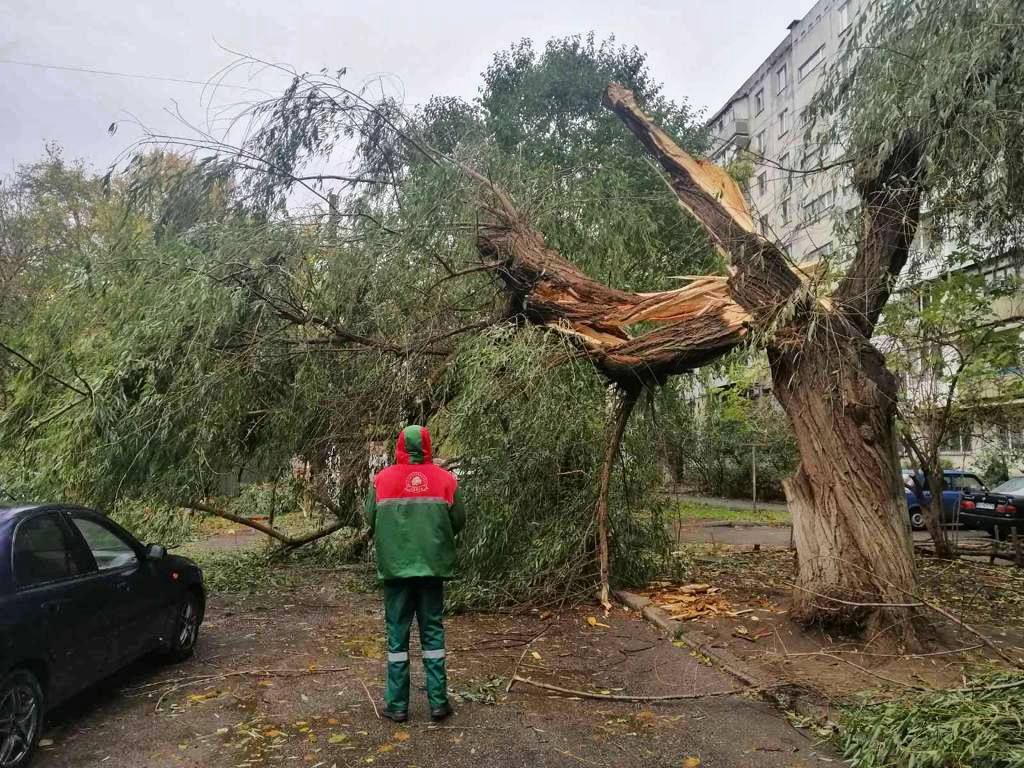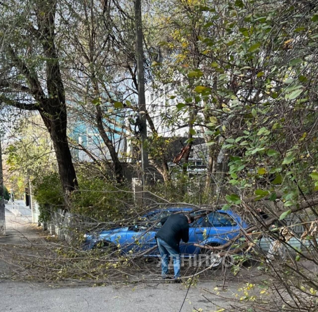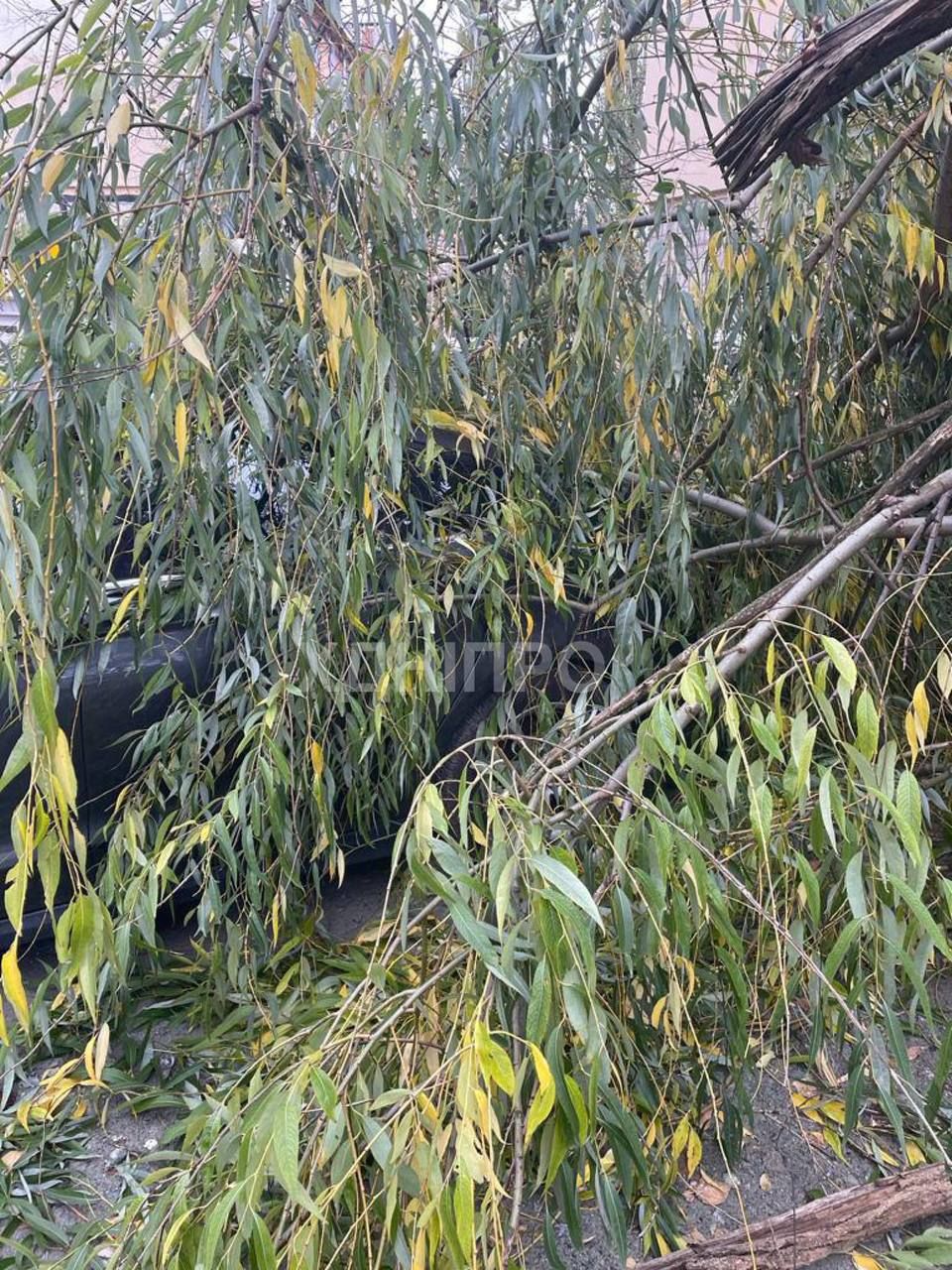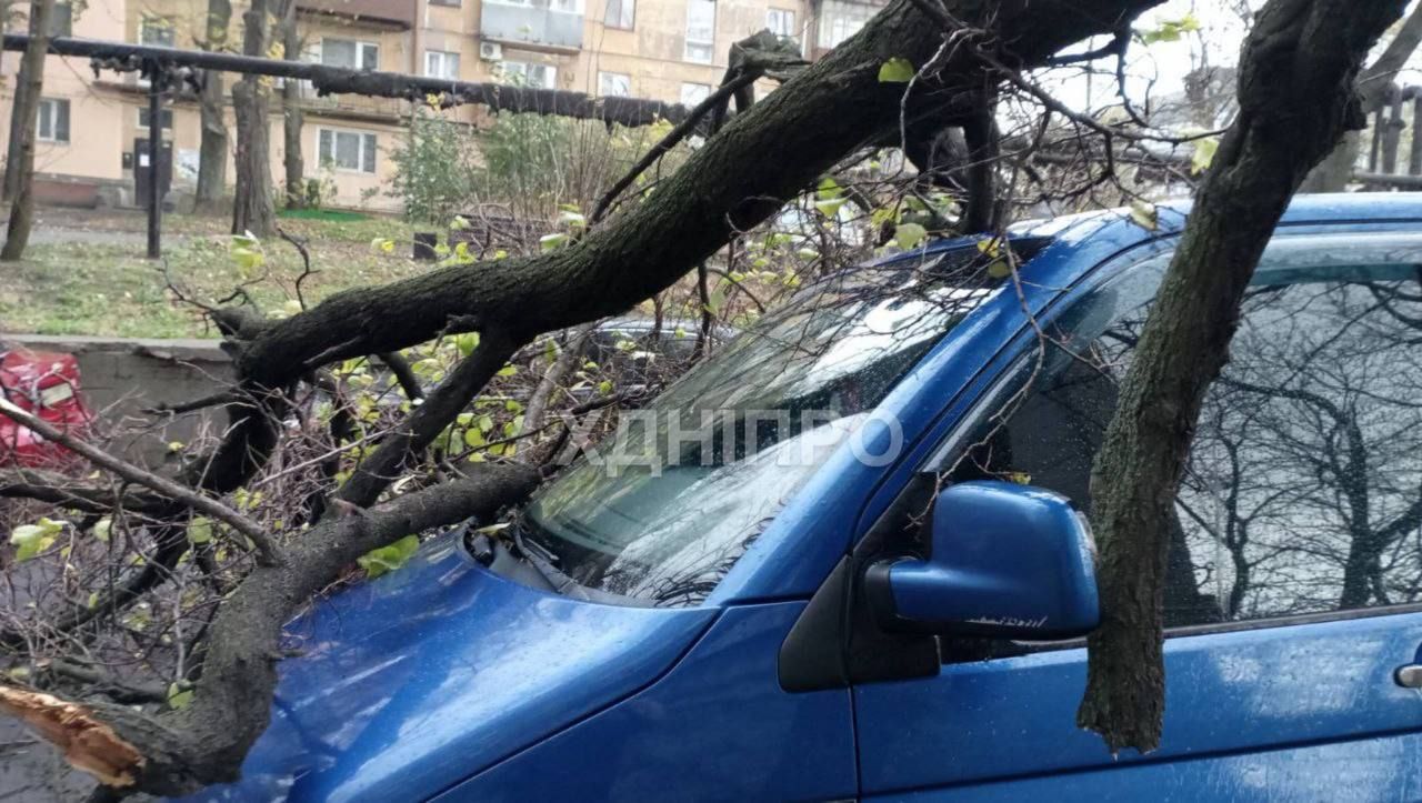Деревья рухнули в результате ветра также и в Днепре. В частности, там на улице Гагарина ива упала на припаркованный автомобиль, повредив его. Также ветка от дерева упала на Театральной улице в городе.