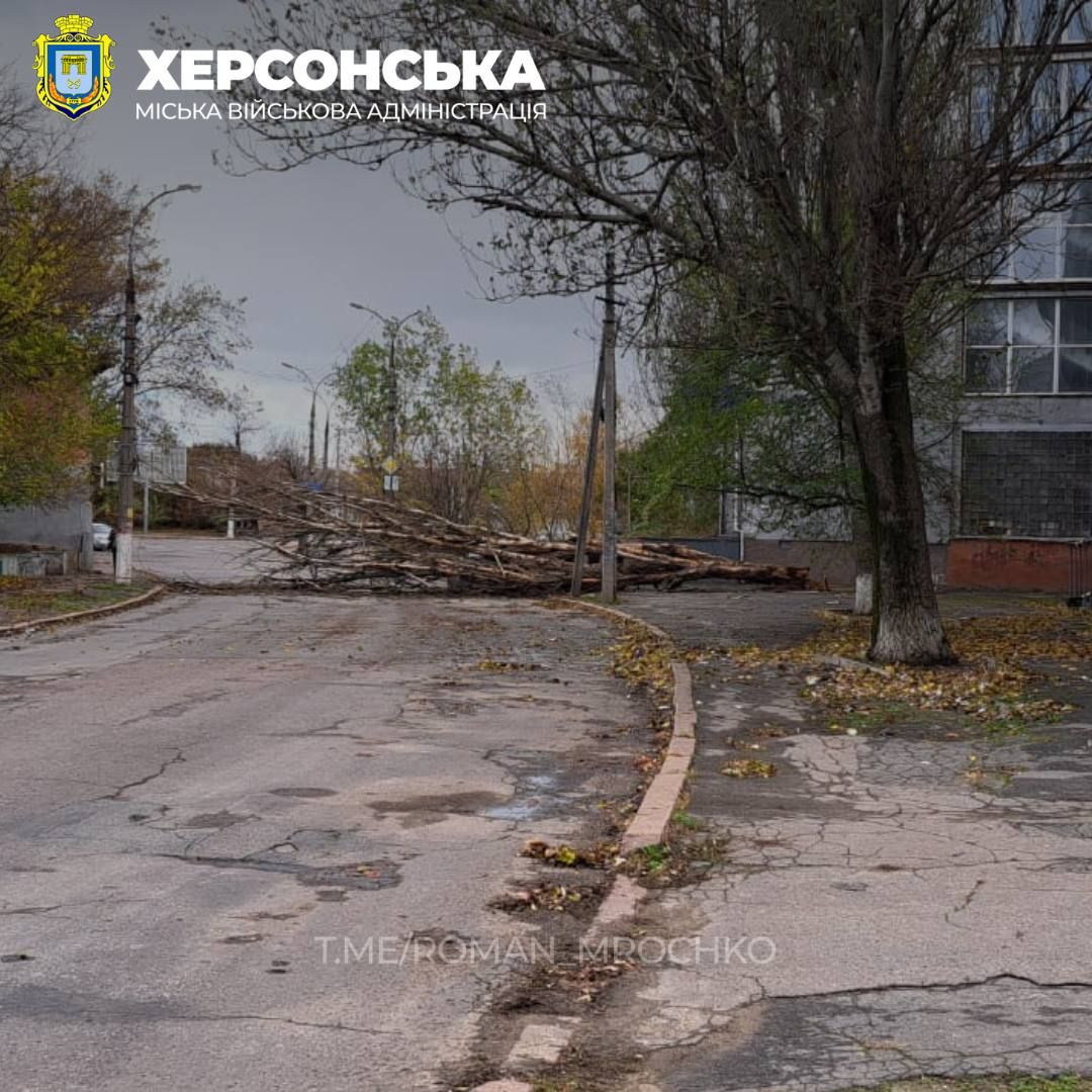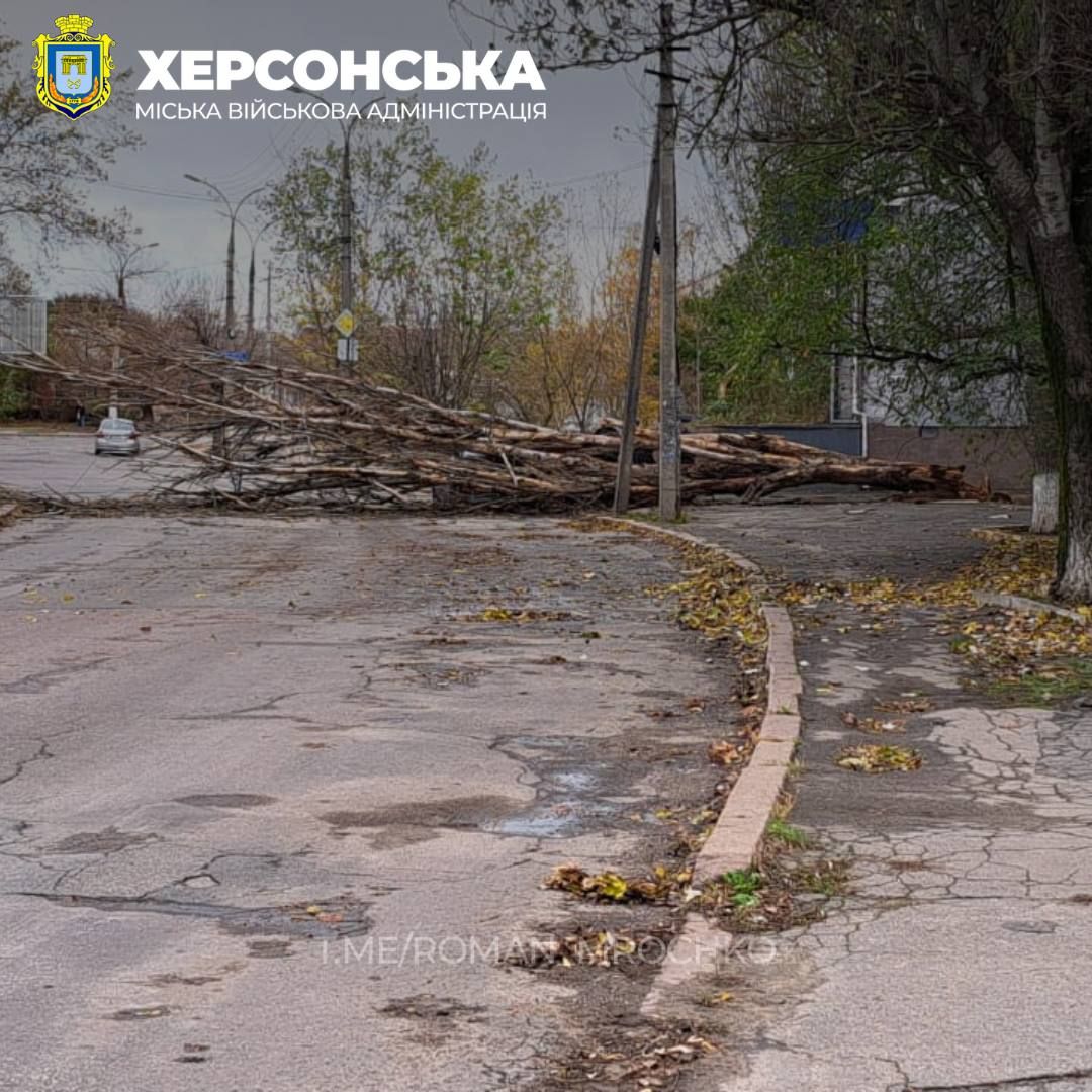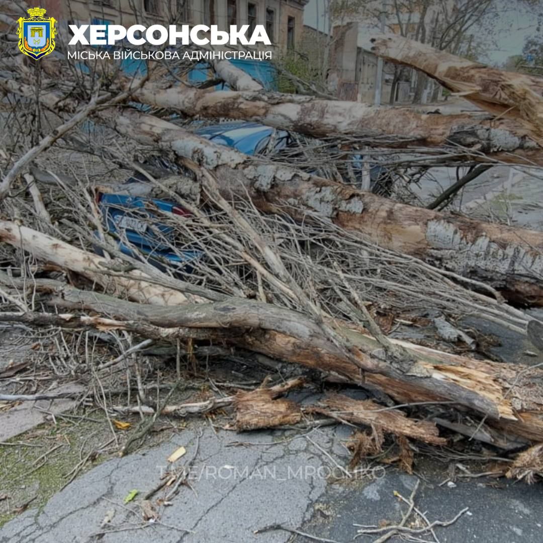 Рухнули деревья также и в Херсоне. Так, начальник Херсонской городской военной администрации Роман Мрочко сказал, что ненастье, которое бурлит в городе вторые сутки, добавляет херсонским коммунальщикам работы.