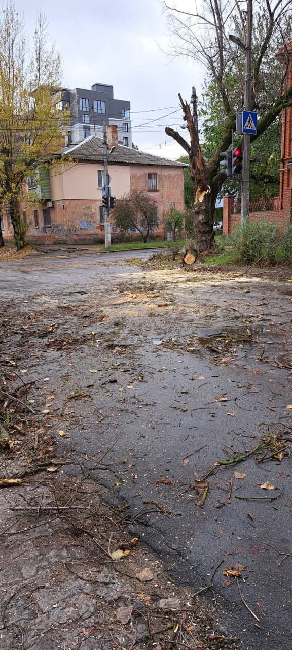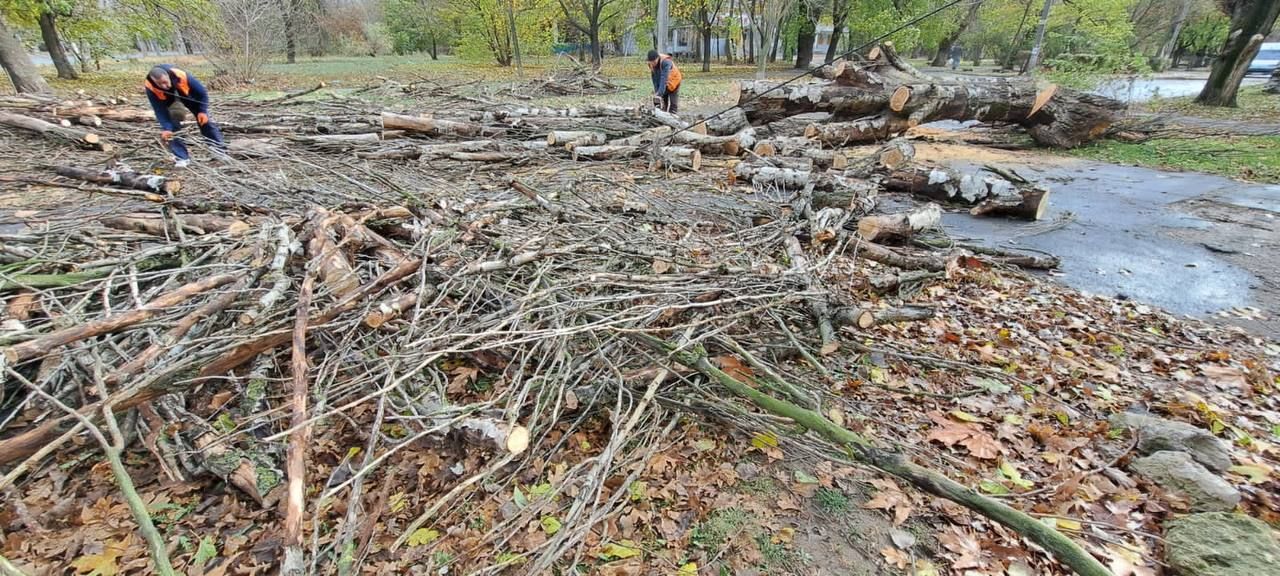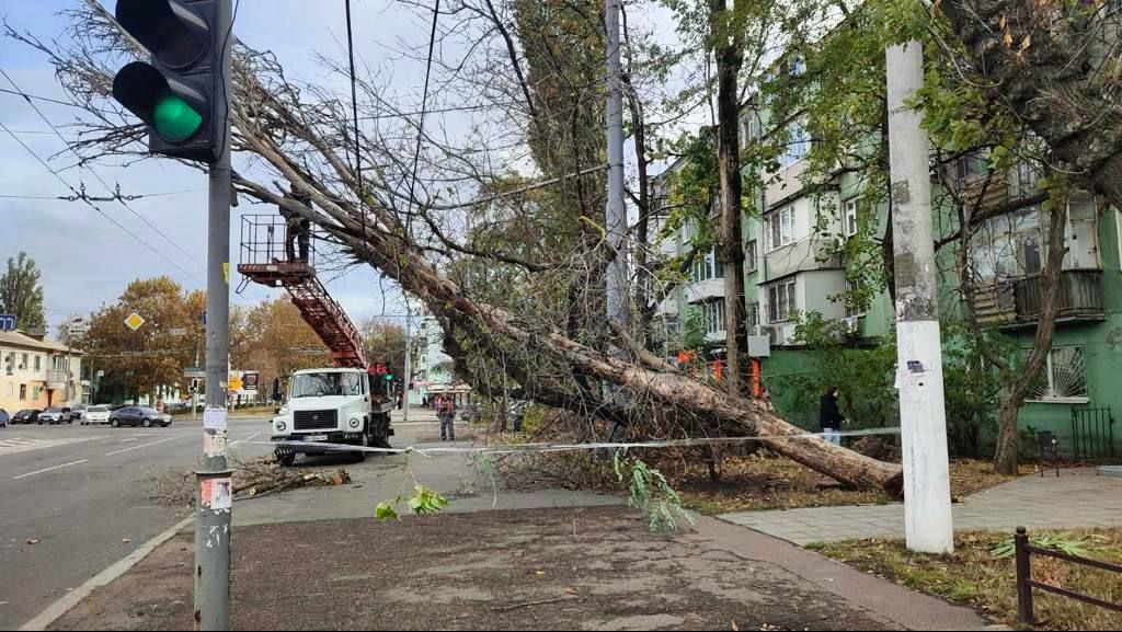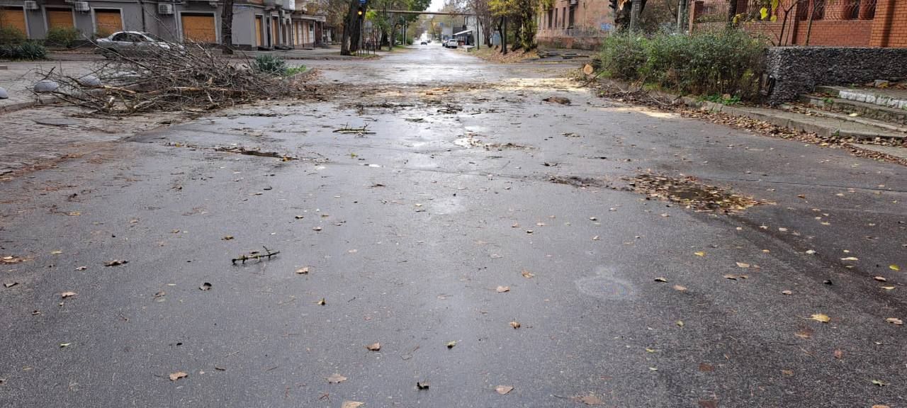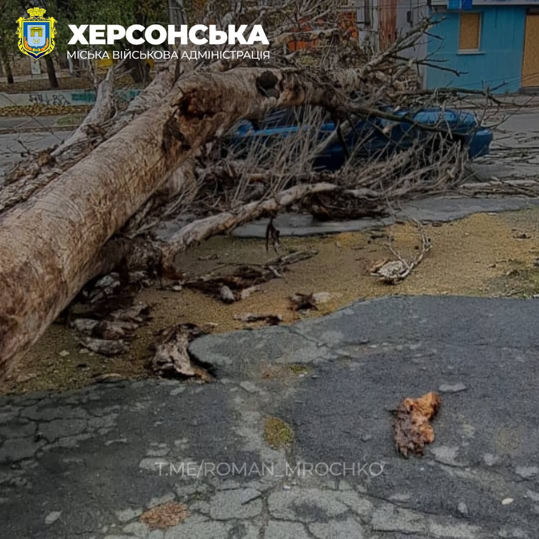 Рухнули деревья также и в Херсоне. Так, начальник Херсонской городской военной администрации Роман Мрочко сказал, что ненастье, которое бурлит в городе вторые сутки, добавляет херсонским коммунальщикам работы.