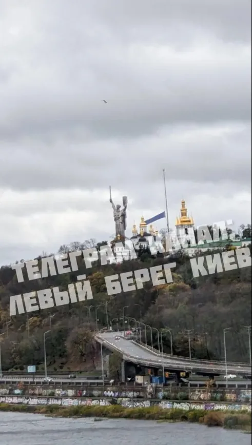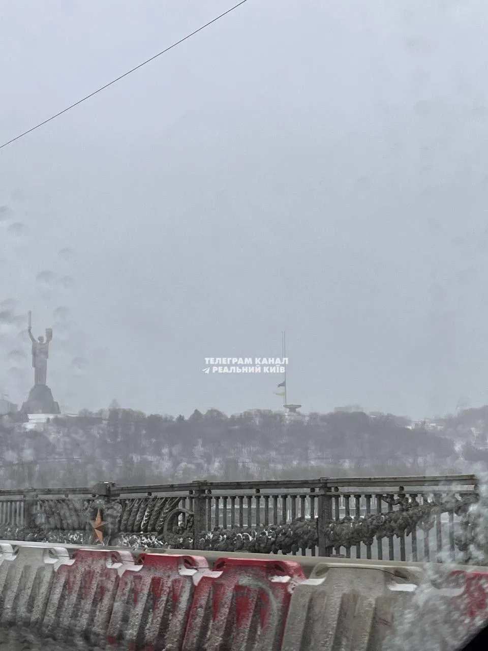Сейчас его уже снимают с флагштока и заменят новым. Новый флаг будет развеваться над киевскими склонами, как только улучшатся погодные условия,