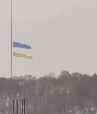 "Суспильне" сообщает, что поврежденный непогодой украинский флаг уже заменили. Его установили на флагшток, но из-за непогоды будут держать приспущенным.