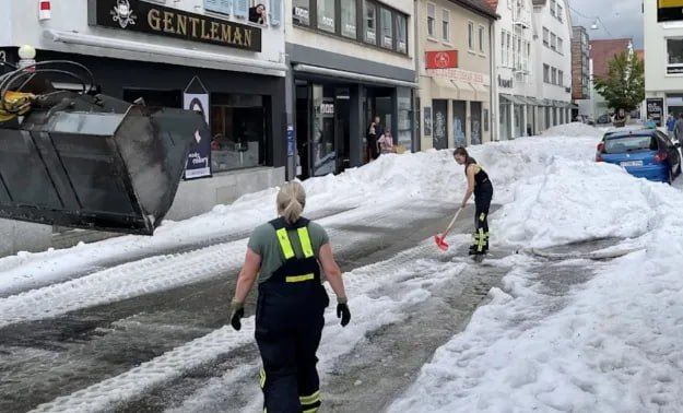 Так, в городе пришлось расчищать улицы снегоуборочной техникой. И это все – среди лета.