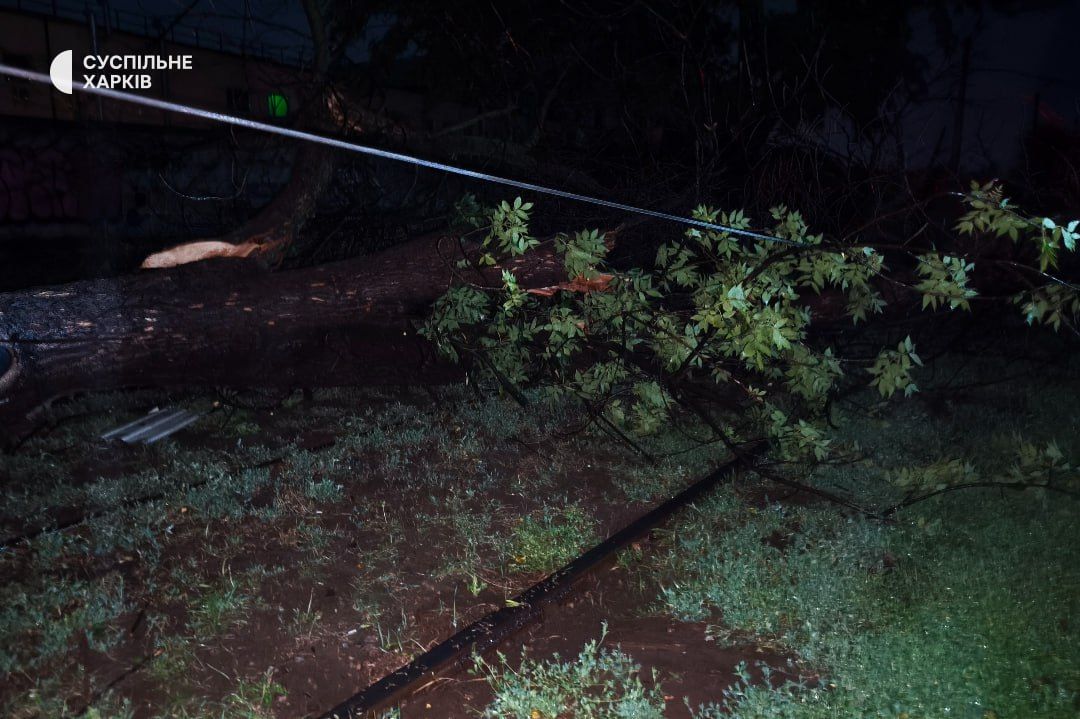 Корреспонденты Суспильного также сообщили, что некоторые деревья в Харькове упали на трамвайные пути, оборвав провода.
