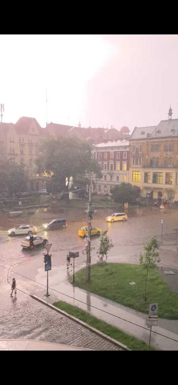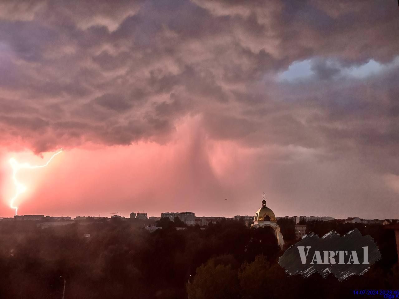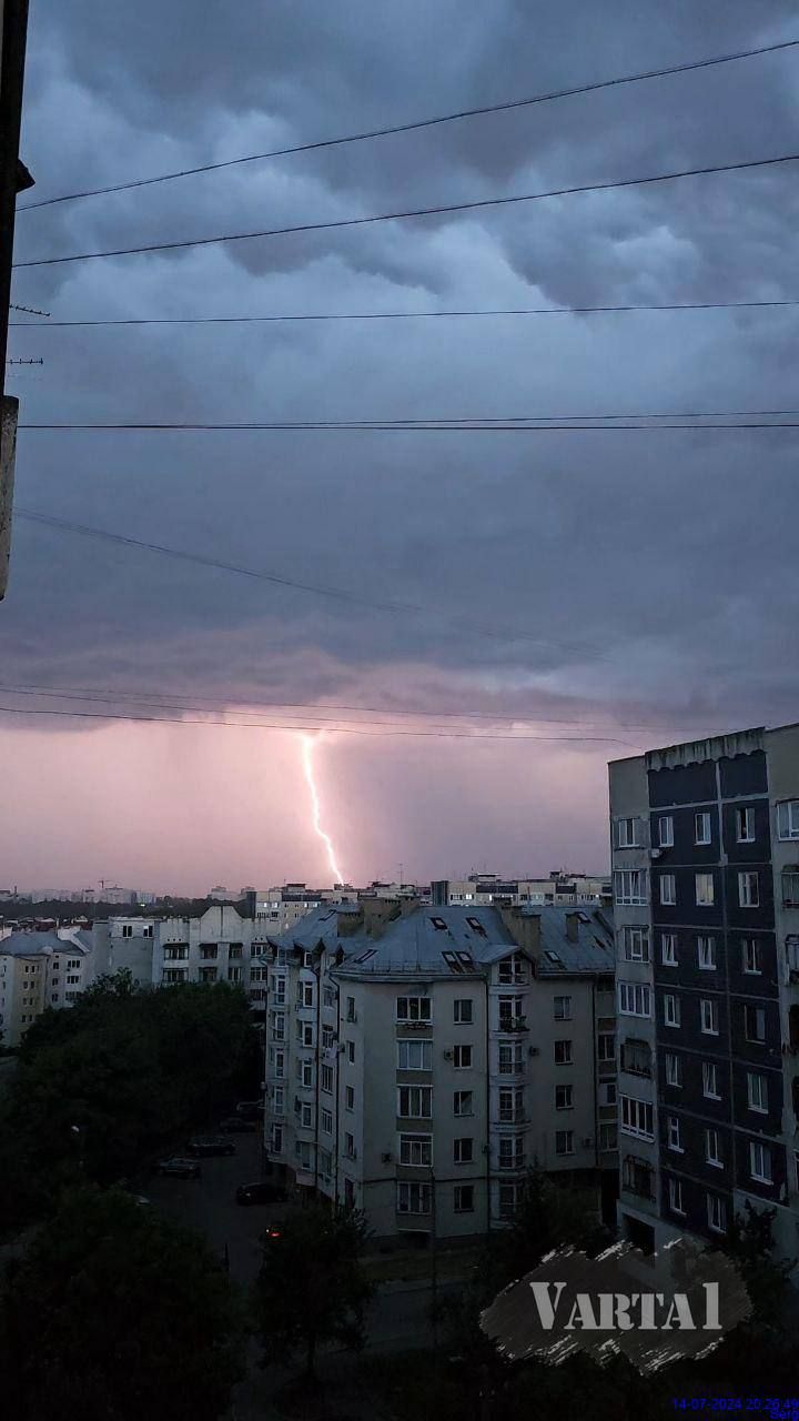 Около 21:32 корреспонденты 24 Канала сообщали, что в городе уже начался ливень. Также журналисты отмечали о молнии и сильном ветре, который сносит вещи с балконов.