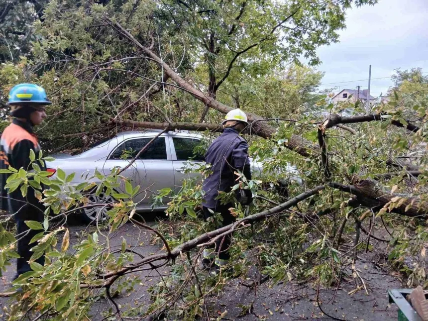 Сильные порывы ветра в Николаеве на улице 3-й Слободской повалили дерево на автомобиль. Спасатели уже на месте происшествия ликвидируют последствия инцидента.