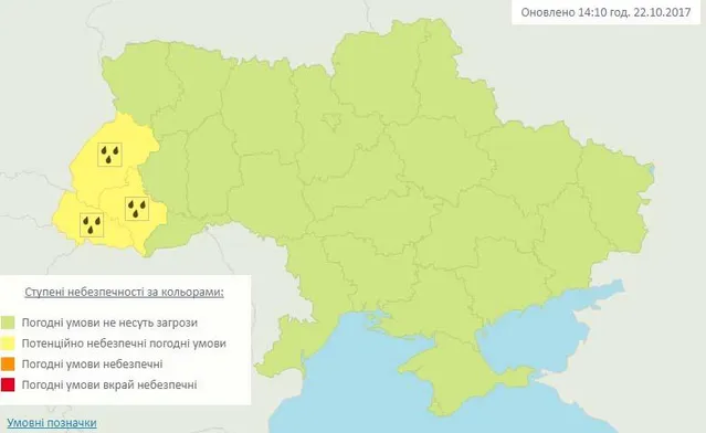 В понедельник, 23 октября, в Украине ожидается резкое похолодание. Как добавили в ГСЧС, в Закарпатской области, кроме дождей будет еще и сильный ветер.