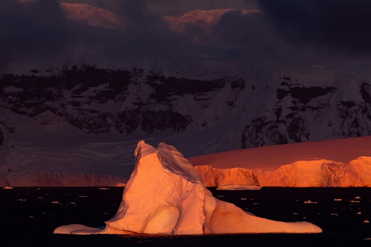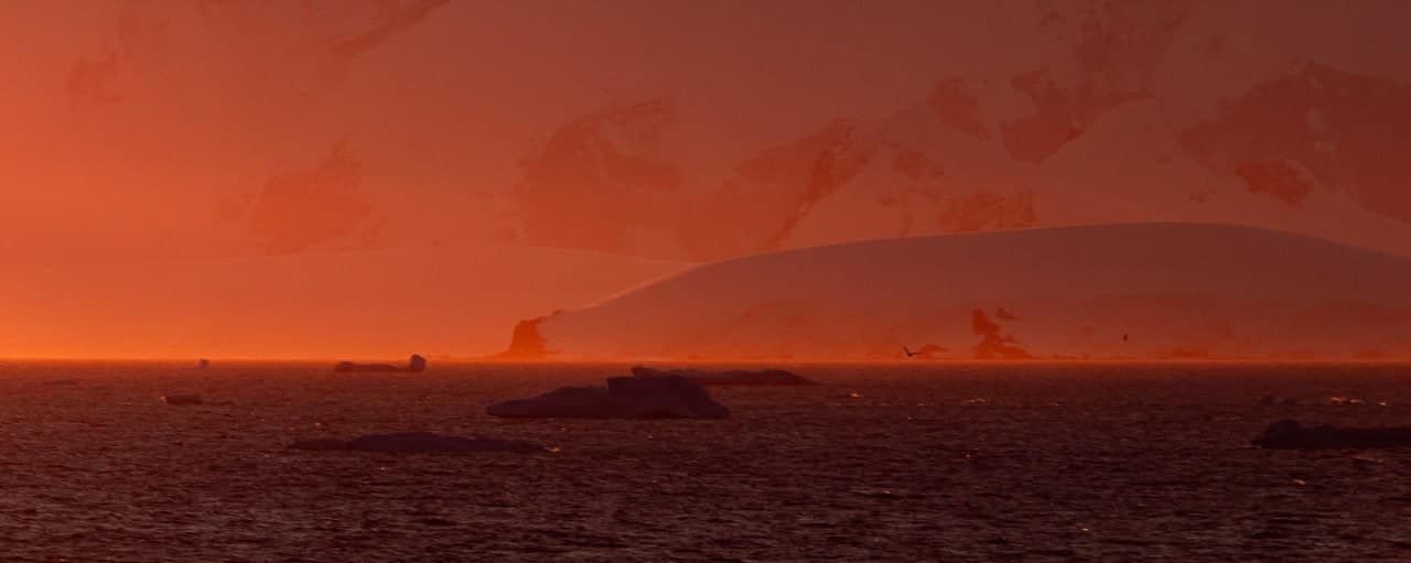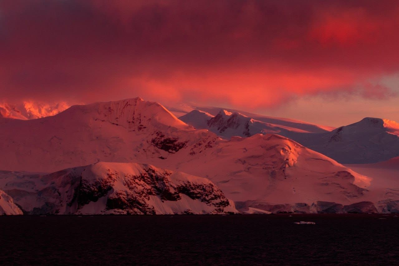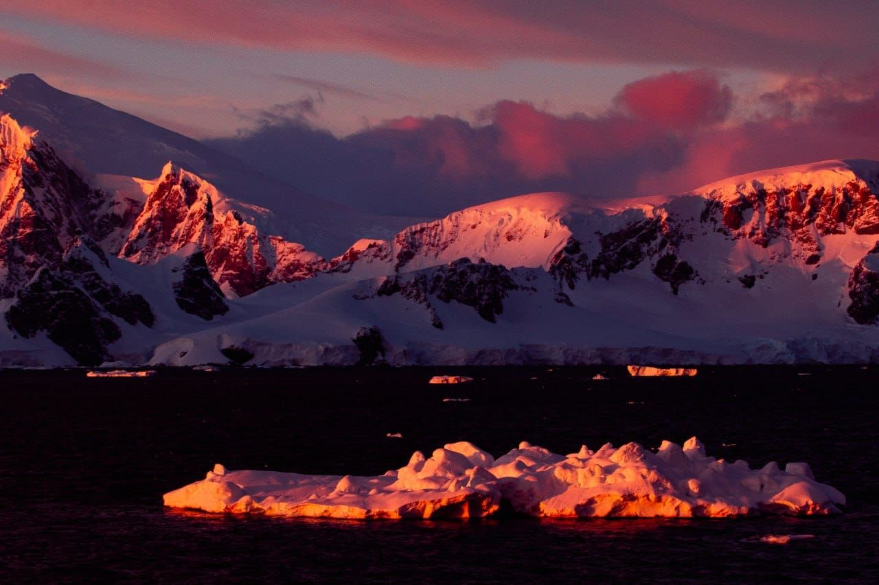 Розовый в Антарктике – это цвет рассветов и закатов, когда небо не затянуто облаками. Очень красиво становится тогда, когда цвета неба отражаются в океане. Весь мир словно полнится розовыми красками.