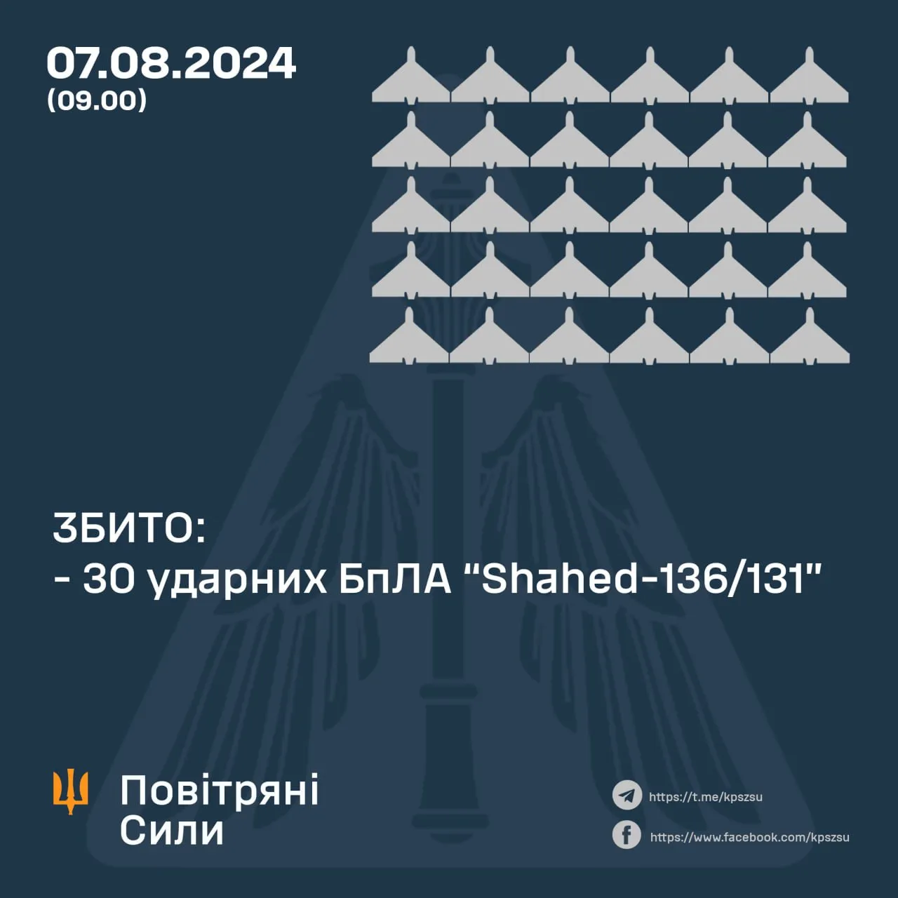 30 "Шахедов" сбила украинская ПВО / Инфографика Воздушных сил ВСУ