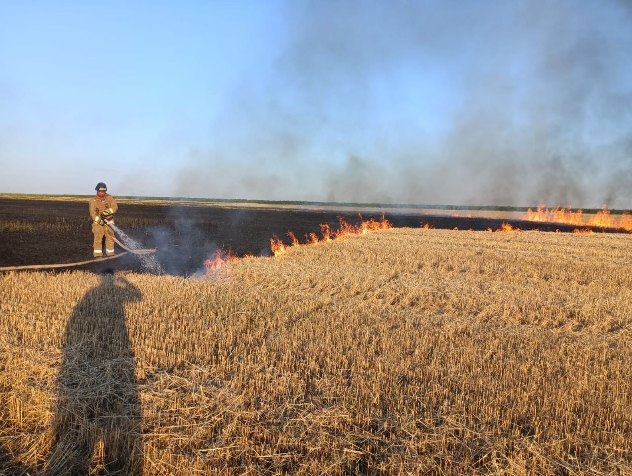 - Горело поле с пшеницей. Пожар спасатели укротили, но огонь уничтожил более 2 гектаров.