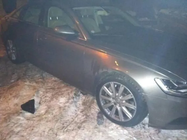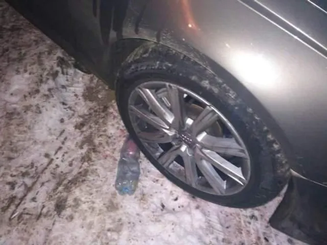 На одной из городских улиц двое злоумышленников пробрались на частное подворье и начали обливать иномарку Audi A6 бензином.