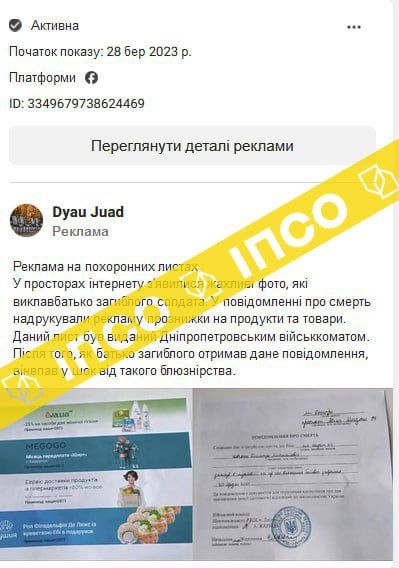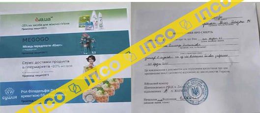 Захватчики додумались прикрепить к письму-уведомлению о погибшем воине рекламу продуктов и товаров со скидками. Об этом сообщает Центр стратегических коммуникаций.