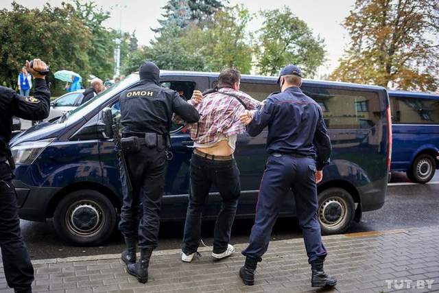 1 сентября у стадиона "Динамо" вспыхнули столкновения между митингующими и омоновцами. Всего задержали по меньшей мере 7 человек, в частности двух журналистов издания TUT.BY. Известно, что рядом со стадионом остановились и дежурили три синих автобуса без номеров с сотрудниками ОМОНа.