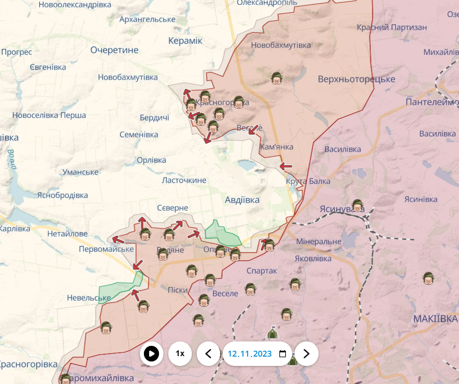 Российские войска также продолжают свое наступление и на Авдеевку. В частности, в направлении Степового и на расширение плацдарма вокруг Красногоровки. И на прошлой неделе у врага здесь были некоторые успехи.