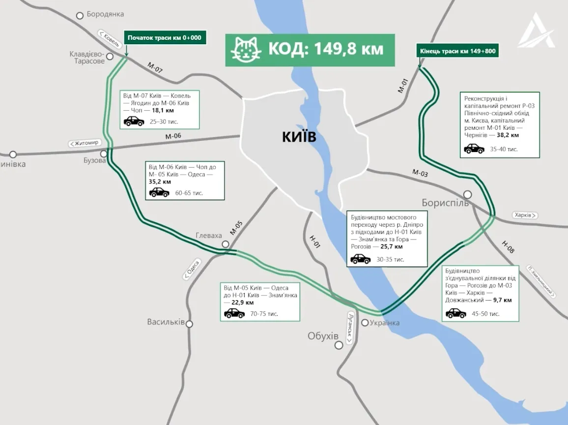 Карта проекта кольцевой дороги вокруг Киева