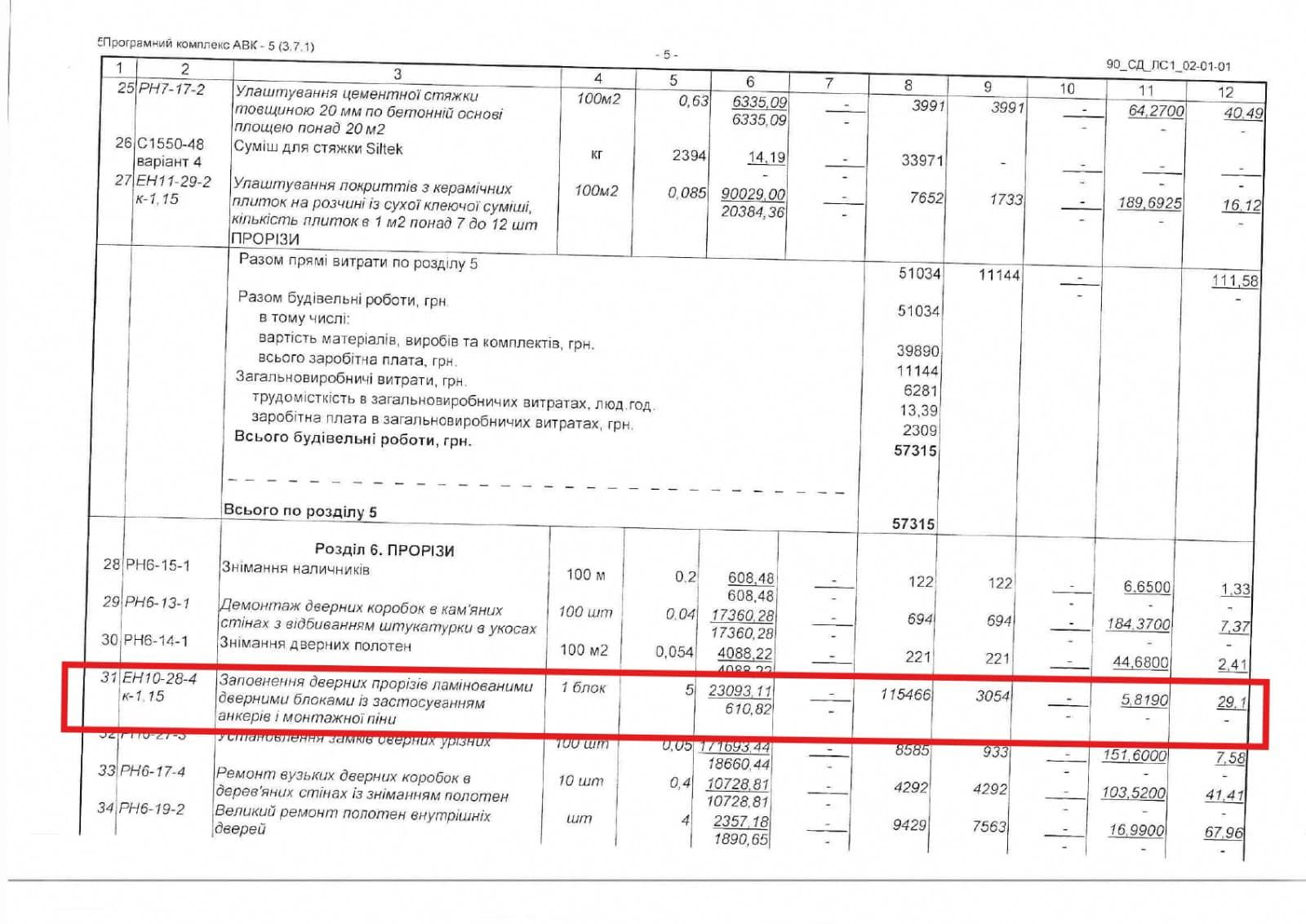 Кроме того, депутат также обратился к производителю дверей, который оценил стоимость установленных конструкций в Киеве. По его подсчетам, 5 комплектов дверей стоили бы 25 800 гривен. В то же время районная администрация потратила 23 тысяч только на одну конструкцию. Емец подчеркнул, что это почти 400% "навара".