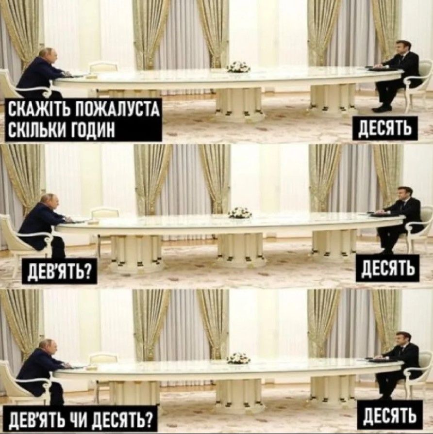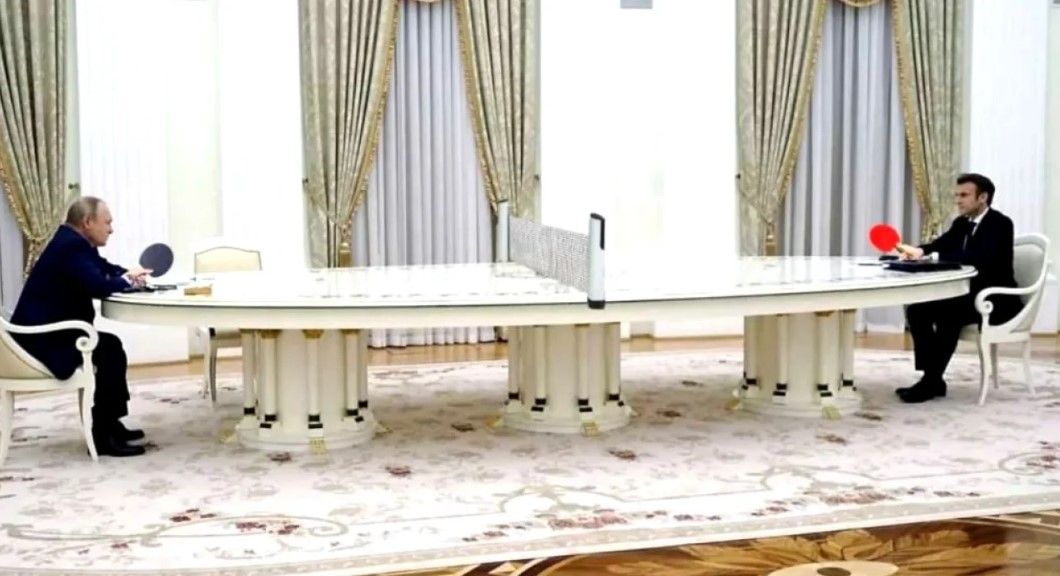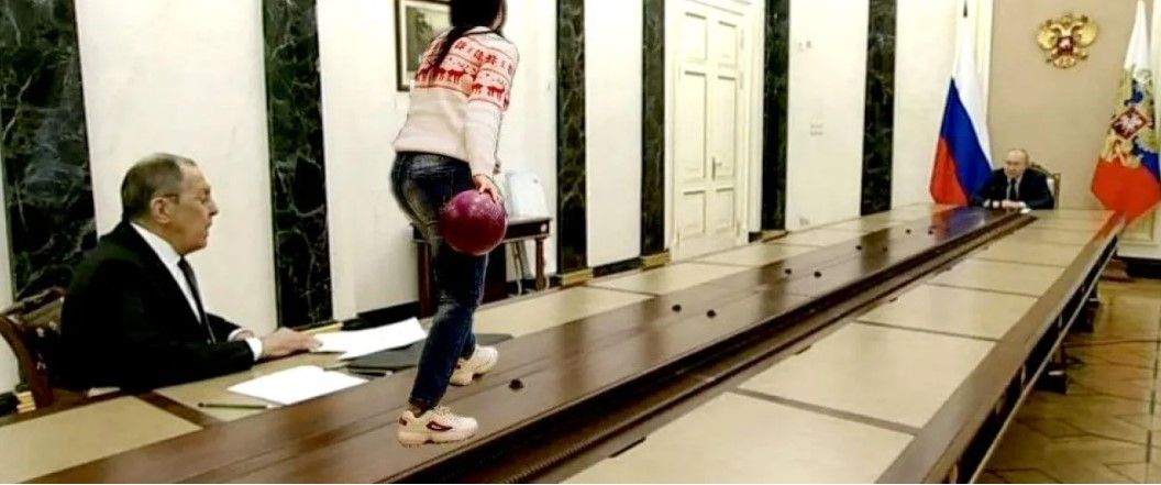 Новый стол Путина имеет необычную форму, похожую на бассейн. Очевидно, чтобы диктатор сидел еще дальше от гостей. Это свидетельствует о том, что он все еще боится контактировать с другими людьми.