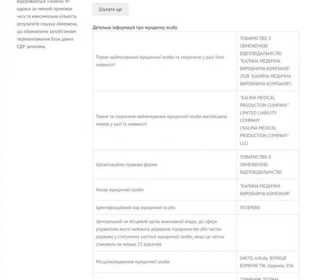 На сайте компании указывается, что она является составной частью "Калина Группа медицинских компаний", занимающейся продажей медицинских принадлежностей и инструментов.