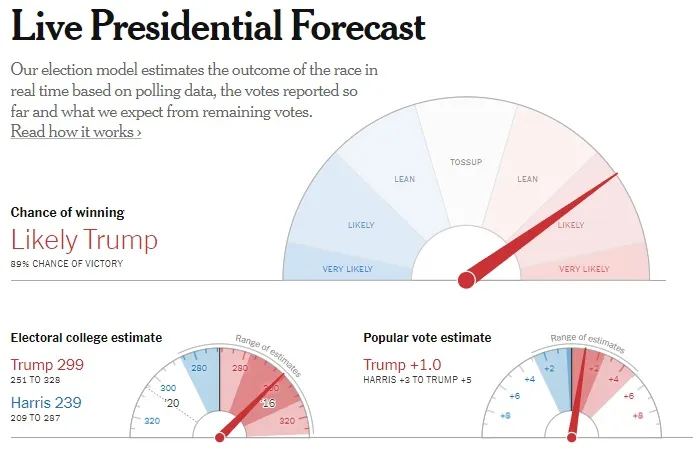 Модель предполагаемого выигрыша Трампа в выборах / Прогноз The New York Times