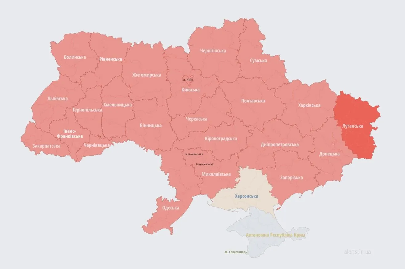 Первую тревогу объявили в 16 часов в Запорожской области. Впоследствии "покраснели" на карте тревог все центральные, восточные, западные и большинство южных регионов. Отбои начались примерно через 2 часа.