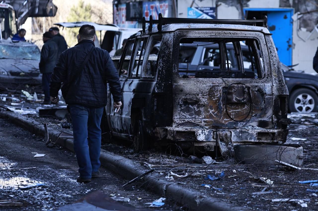 Кроме этого, повреждено 8 пятиэтажных домов, админздание, 30 автомобилей включая пожарную машину, возникли пожары в жилых домах и административном здании.